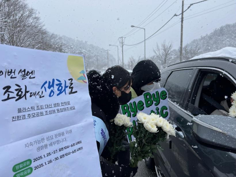 Á¤¹Ì°æ ÀÚ¿ø¼øÈ¯°úÀåÀº ¡°¼º¹¦ ¹®È ¼Ó ÀÛÀº ¼±Åà Çϳª°¡ ȯ°æÀ» ÁöŰ´Â Å« ½ÇõÀ¸·Î À̾îÁú ¼ö ÀÖ´Ù¡±¸ç ¡°À̹ø ¼³ ¸íÀý¿¡µµ ÇÃ¶ó½ºÆ½ Á¶È ´ë½Å »ýȸ¦ »ç¿ëÇØ ģȯ°æ Ãß¸ð°ø¿ø Á¶¼º¿¡ ½Ã¹Î ¿©·¯ºÐÀÌ ÇÔ²²ÇØ ÁÖ±æ ¹Ù¶õ´Ù¡±°í ¸»Çß´Ù.