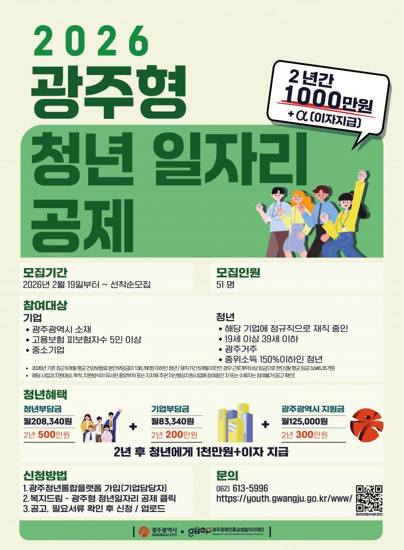 ¡®±¤ÁÖÇü û³âÀÏÀÚ¸® °øÁ¦ »ç¾÷¡¯Àº û³âÀÌ 2³â°£ 500¸¸¿øÀ» Àû¸³ÇÏ¸é ±â¾÷ 200¸¸¿ø, ±¤ÁÖ±¤¿ª½Ã°¡ 300¸¸¿øÀ» °¢°¢ Àû¸³ÇØ ¸¸±â°øÁ¦±Ý 1000¸¸¿øÀ» Áö¿øÇÏ´Â Á¦µµ´Ù. û³âÀÇ ¾ÈÁ¤Àû Áö¿ªÁ¤ÂøÀ» µ½´Â µ¿½Ã¿¡, Áö¿ª Áß¼Ò±â¾÷ÀÇ Àη Ȯº¸¿Í Àå±â±Ù¼ÓÀ» À¯µµÇϱâ À§ÇØ Áö³ 2024³â µµÀÔÇß´Ù.