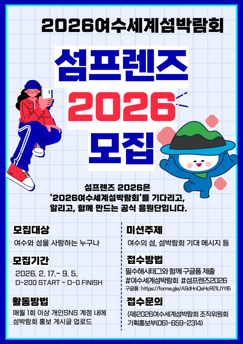 [°ø°£´º½º = ¾ÈÀ翵±âÀÚ] 2026¿©¼ö¼¼°è¼¶¹Ú¶÷ȸÁ¶Á÷À§¿øÈ¸(ÀÌÇÏ ¡®Á¶Á÷À§¡¯)°¡ 2026¿©¼ö¼¼°è¼¶¹Ú¶÷ȸ °ø½Ä ÀÀ¿ø´Ü ¡®¼¶ÇÁ·»Á¸¦ ¸ðÁýÇÑ´Ù.