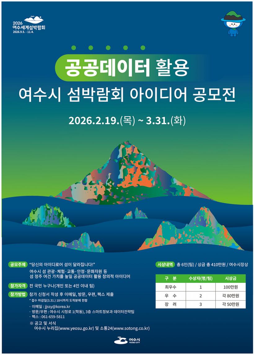 [°ø°£´º½º = ¾ÈÀ翵±âÀÚ] ¿©¼ö½Ã°¡ °ø°øµ¥ÀÌÅ͸¦ Ȱ¿ëÇØ ¼¶ Áö¿ª Çö¾ÈÀ» ÇØ°áÇÒ Ã¢ÀÇÀûÀÎ Á¤Ã¥ ¾ÆÀ̵ð¾î ¹ß±¼À» À§ÇØ ¡®°ø°øµ¥ÀÌÅÍ È°¿ë ¿©¼ö½Ã ¼¶¹Ú¶÷ȸ ¾ÆÀ̵ð¾î °ø¸ðÀü¡¯À» °³ÃÖÇÑ´Ù°í ¹àÇû´Ù.