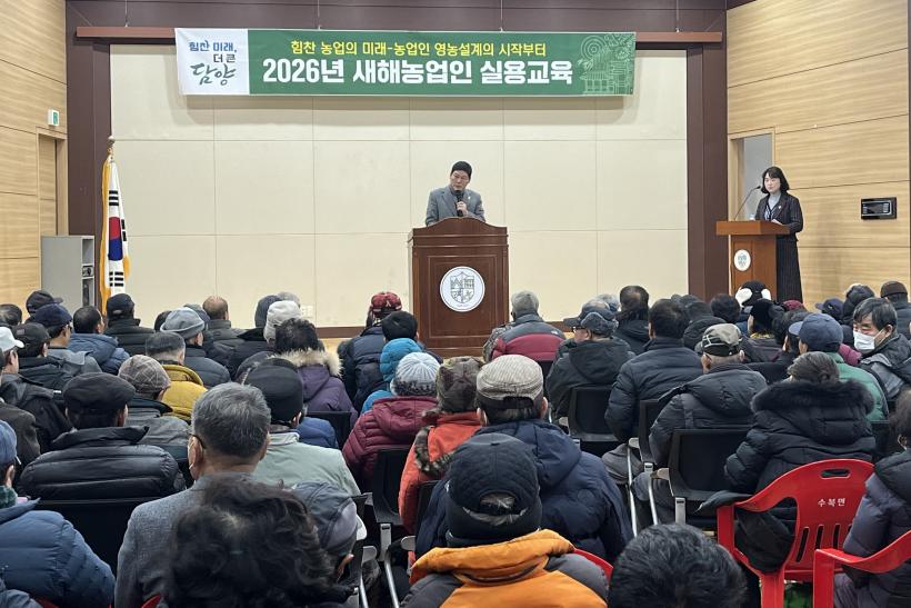 [°ø°£´º½º = ±è¼ö±Ù±âÀÚ] ÇÑ ´Þ°£ 17ȸ¿¡ °ÉÃÄ ¿î¿µµÈ ´ã¾ç±º ¡®2026³â »õÇØ³ó¾÷Àνǿ뱳À°¡¯ÀÌ 5,545¸íÀÇ ³ó¾÷ÀÎÀÌ Âü¿©ÇÑ °¡¿îµ¥ ¼ºÈ²¸®¿¡ ¸¶¹«¸®µÆ´Ù.