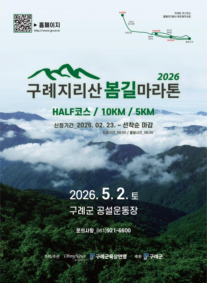 [°ø°£´º½º = Çѵ¿¼ø±âÀÚ] Àü³² ±¸·Ê±ºÀº ¾Æ¸§´Ù¿î ÀÚ¿¬È¯°æÀ» ¹è°æÀ¸·Î ÇÑ ¡®Á¦1ȸ ±¸·Ê Áö¸®»êº½±æ ¸¶¶óÅæ´ëȸ¡¯°¡ ¿À´Â 5¿ù 2ÀÏ(Åä) ±¸·Ê°ø¼³¿îµ¿Àå¿¡¼ °³ÃÖµÈ´Ù°í ¹àÇû´Ù.