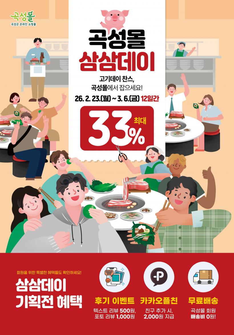 »ï»ïµ¥ÀÌ Æ¯º°ÀüÀº 2¿ù 23ÀϺÎÅÍ 3¿ù 6ÀϱîÁö 12Àϰ£ ÁøÇàµÈ´Ù. °î¼º¸ô ȸ¿ø¿¡°Ô´Â 1ÀÎ 2¸Å, 1¸Å´ç ÃÖ´ë 5¸¸ ¿ø±îÁö ÇÒÀÎ ÇýÅÃÀÌ Àû¿ëµÇ¸ç, À̹ø Çà»ç¸¦ ÅëÇØ Áö¿ª Ãà»ê¹°ÀÇ ¿Â¶óÀÎ ¼Òºñ ±â¹ÝÀÌ ÇÑÃþ È®´ëµÉ °ÍÀ¸·Î ±â´ëµÈ´Ù.
