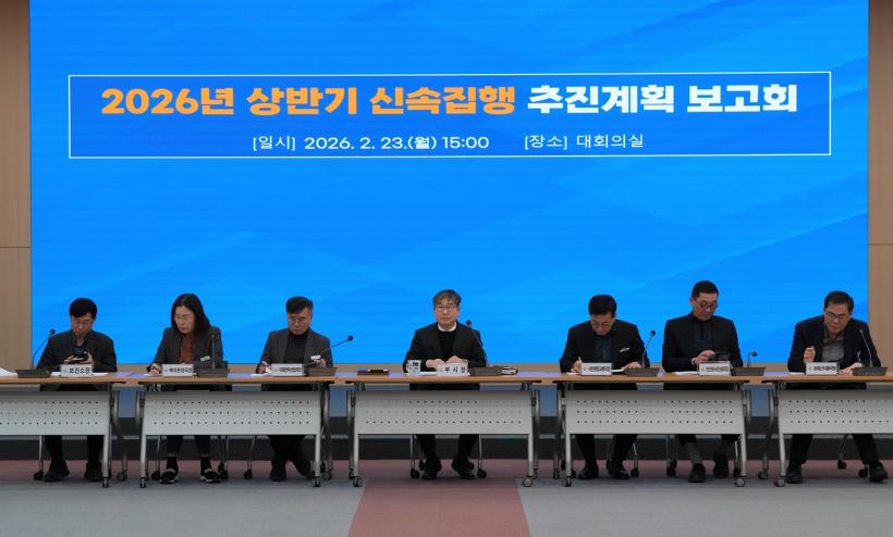 ³ªÁֽô Áö³ 23ÀÏ ½Ãû ´ëȸÀǽǿ¡¼ °»ó±¸ ºÎ½ÃÀå ÁÖÀç·Î »ó¹Ý±â ½Å¼ÓÁýÇà ÃßÁø°èȹ º¸°íȸ¸¦ ¿°í ºÎ¼º° ÁýÇà ÇöȲ°ú ÁÖ¿ä »ç¾÷ ÃßÁø »óȲÀ» Á¡°ËÇß´Ù°í 24ÀÏ ¹àÇû´Ù.