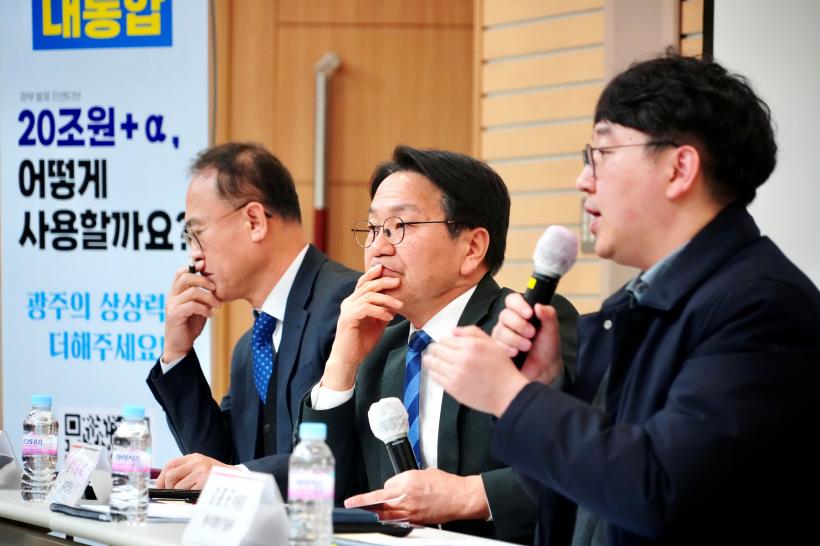 °±âÁ¤ ±¤ÁÖ±¤¿ª½ÃÀåÀÌ 24ÀÏ ±¤ÁÖ°úÇбâ¼ú¿ø¿¡¼ '±¤ÁÖÀü³²ÅëÇÕ ¿¡³ÊÁö»ê¾÷ºÐ¾ß ¹Ì·¡ºñÀü¼³¸íȸ'¿¡ Âü¼®ÇØ ±¤ÁÖÀü³² ÅëÇÕÀÇ ÃßÁø»óȲ°ú Áö¿ª ¿¡³ÊÁö ½Å»ê¾÷ À°¼º Àü·« µî¿¡ ´ëÇØ ½Ã¹Îµé°ú ´ëȸ¦ ³ª´« µÚ ±â³äÃÔ¿µÀ» Çϰí ÀÖ´Ù.