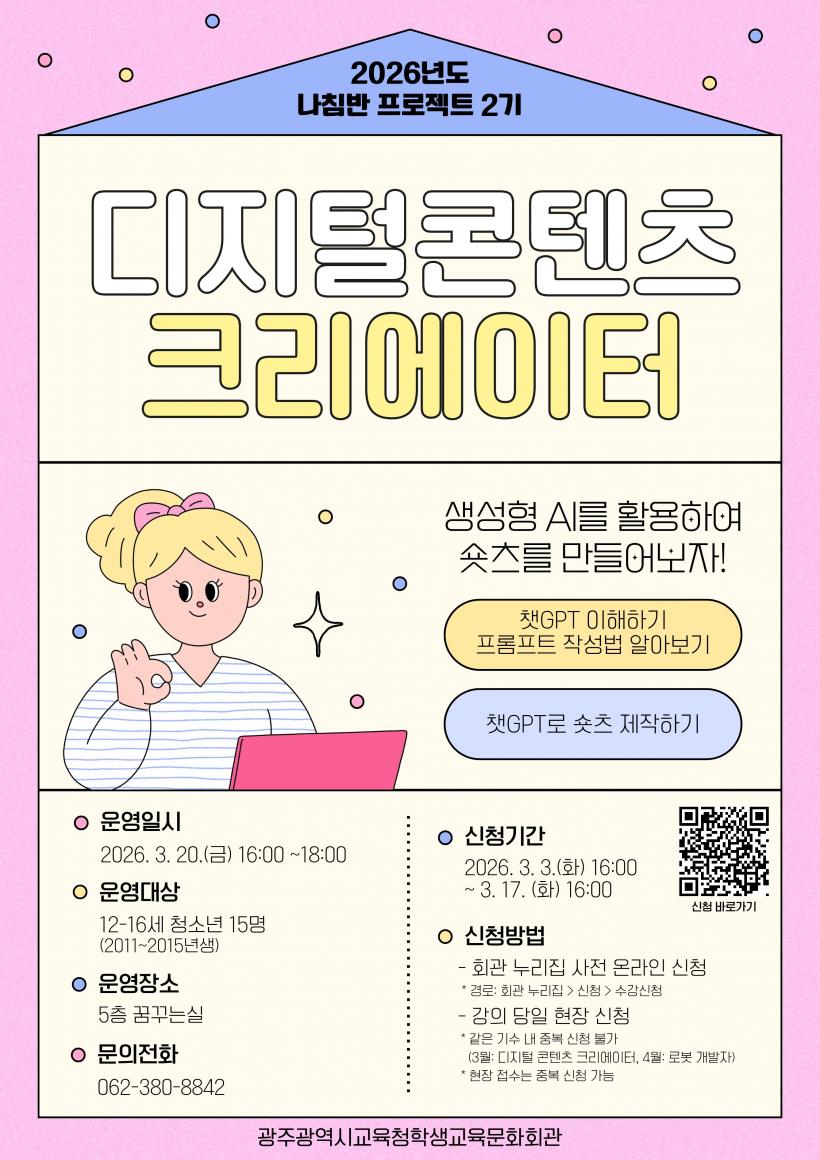 ¡®³ªÄ§¹Ý ÇÁ·ÎÁ§Æ®¡¯´Â 3¿ù 20ÀϺÎÅÍ ¸Å¿ù 1ȸ¾¿ ÃÑ 10ȸ ¿î¿µµÈ´Ù. û¼Ò³âÀÌ ¸àÅä¿Í ¦À» ÀÌ·ï AI ¼ôÃ÷ Á¦ÀÛ µî µðÁöÅÐ ÄÜÅÙÃ÷ Å©¸®¿¡ÀÌÅÍ, ·Îº¿ °øÇÐ µî À¯¸ÁÁ÷¾÷À» üÇèÇÑ´Ù.