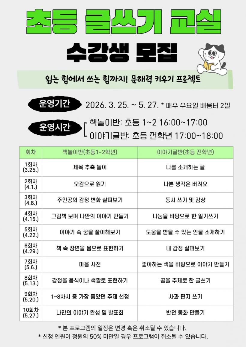 Ã¥³îÀ̹ÝÀº ´Ù¾çÇÑ Ã¥³îÀÌ Áß½É È°µ¿À» ÅëÇØ ±âÃÊ ¹®ÇØ·ÂÀ» ÀÚ¿¬½º·´°Ô ÀÍÈ÷µµ·Ï µ½°í, À̾߱â±Û¹ÝÀº ÁÖÁ¦ ޱ¸¿Í ±Û¾²±â Ȱµ¿À» ÅëÇØ »ç°í·Â°ú Ç¥Çö·Â Çâ»ó¿¡ ÁßÁ¡À» µÎ°í ¿î¿µµÉ ¿¹Á¤ÀÌ´Ù.