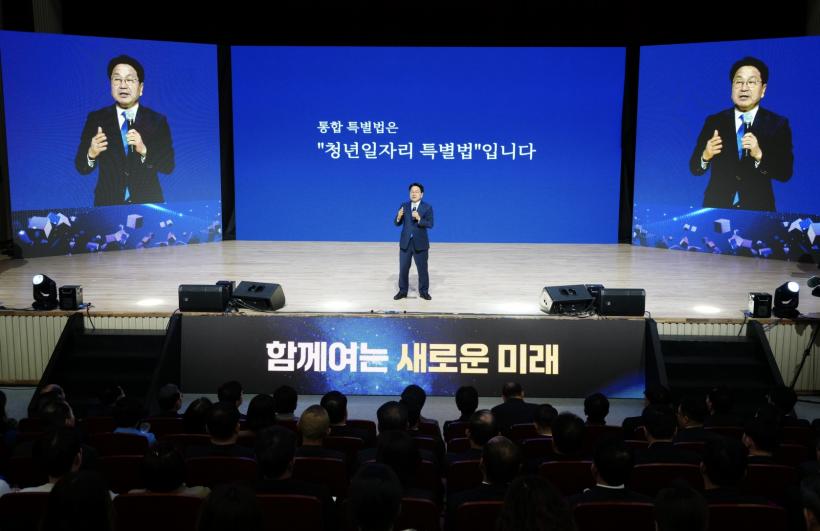 ±¤ÁÖ±¤¿ª½Ã(½ÃÀå °±âÁ¤)¿Í Àü¶ó³²µµ(Áö»ç ±è¿µ·Ï)´Â 3ÀÏ ³ªÁֽà Çѱ¹¿¡³ÊÁö°ø°ú´ëÇб³ ´ë°´ç¿¡¼ ¡®±¤ÁÖÀü³² ÇàÁ¤ÅëÇÕ ½Ãµµ¹Îº¸°íȸ¡¯¸¦ ¿¾î Ưº°¹ý Åë°ú±îÁö ÃßÁø °æ°ú¿Í ¹Ì·¡ ºñÀüÀ» °øÀ¯Çß´Ù.