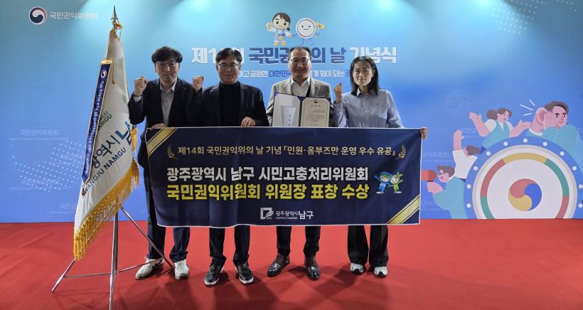 [°ø°£´º½º = ±è´ë¿µ±âÀÚ] ±¤ÁÖ ³²±¸ ½Ã¹Î°íÃæÃ³¸®À§¿øÈ¸°¡ Á¦14ȸ ±¹¹Î ±ÇÀÍÀÇ ³¯À» ±â³äÇØ ±¹¹Î±ÇÀÍÀ§¿øÈ¸¿¡¼ ÁÖ°üÇÑ ¿ÈºÎÁ ºÎ¹® ´Üü ºÐ¾ß °øÀû Æò°¡¿¡¼ ¿ì¼ö´Üü·Î ¼±Á¤µÅ ±¹¹Î±ÇÀÍÀ§¿øÀå »óÀ» ¹Þ¾Ò´Ù.