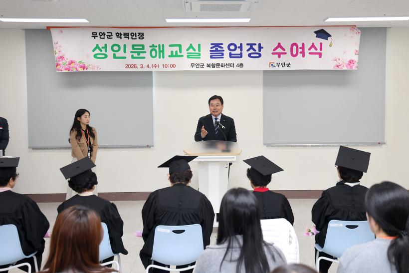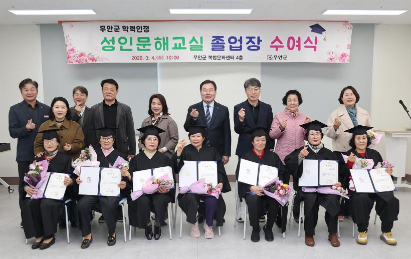 [°ø°£´º½º = ¹Ú¼º¿Á±âÀÚ] ¹«¾È±º(±º¼ö ±è»ê)Àº Áö³ 4ÀÏ ¹«¾È±º º¹ÇÕ¹®È¼¾ÅÍ ³» û¼Ò³â¼ö·Ã°ü ±³À°½Ç¿¡¼ ÃʵîÇзÂÀÎÁ¤ ¼ºÀι®Çر³½Ç Á¹¾÷»ý 8¸íÀ» ´ë»óÀ¸·Î Á¹¾÷Àå ¼ö¿©½ÄÀ» °³ÃÖÇß´Ù°í ¹àÇû´Ù.