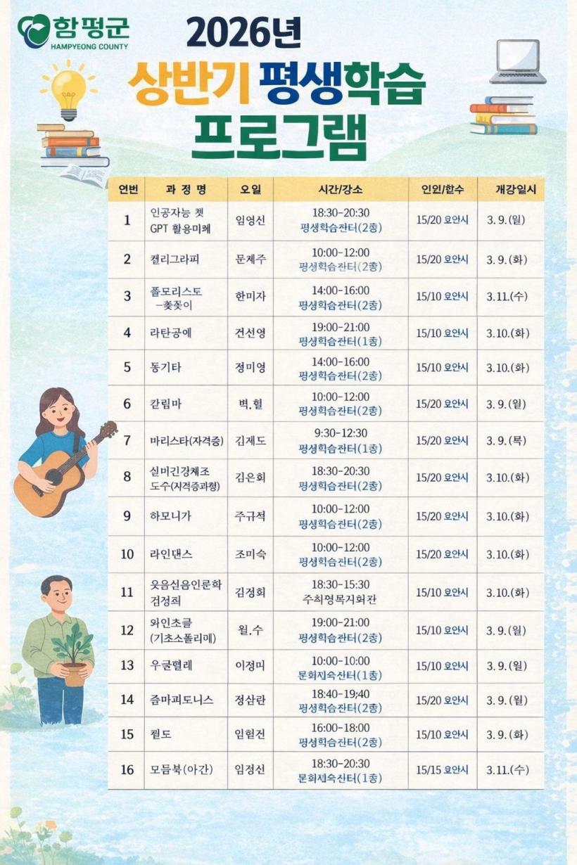 [°ø°£´º½º = Àå¿ÁÁø±âÀÚ] Àü³² ÇÔÆò±ºÀº ¿À´Â 9ÀϺÎÅÍ ±º¹ÎÀÇ ´Ù¾çÇÑ ¹®È»ýȰ°ú ÀÚ°ÝÁõ ÃëµæÀ» Áö¿øÇϱâ À§ÇÑ ¡®2026³â »ó¹Ý±â Æò»ýÇнÀ ÇÁ·Î±×·¥¡¯À» °³°ÇÑ´Ù°í ¹àÇû´Ù.