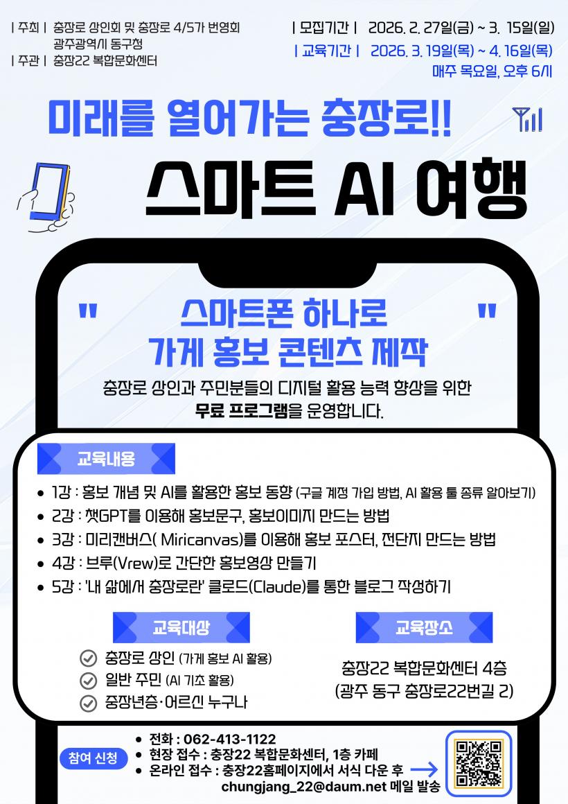[°ø°£´º½º = ±è´ë¿µ±âÀÚ] ±¤ÁÖ µ¿±¸ ÃæÀå22 ¹®È»ç¾÷´ÜÀº ÃæÀå·Î »óÀÎȸ, ÃæÀå·Î4¡¤5°¡¹ø¿µÈ¸¿Í Çù¾÷ÇØ ¡®¹Ì·¡¸¦ ¿¾î°¡´Â ÃæÀå·Î!! ½º¸¶Æ® ÀΰøÁö´É(AI) ¿©Ç࡯ ±³À° ÇÁ·Î±×·¥À» °³¼³¡¤¿î¿µÇÑ´Ù°í ¹àÇû´Ù.
