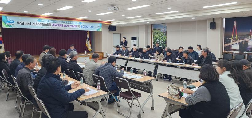 [°ø°£´º½º = ¾ÈÀ翵±âÀÚ] ¿©¼ö½Ã´Â Áö³ 5ÀÏ ³ó¾÷±â¼ú¼¾ÅÍ ´ëȸÀǽǿ¡¼ Çб³±Þ½Ä ģȯ°æ³ó»ê¹° °è¾àÀç¹è ³ó°¡¿Í °£´ãȸ¸¦ °³ÃÖÇß´Ù°í ¹àÇû´Ù.