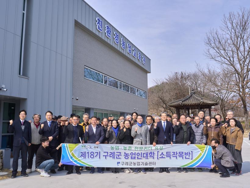 [°ø°£´º½º = Çѵ¿¼ø±âÀÚ] Àü³² ±¸·Ê±ºÀº Áö³ 5ÀÏ Ä£È¯°æ³ó¾÷±³À°°ü¿¡¼ ±³À°»ý°ú °ü°èÀÚ µî 50¿©¸íÀÌ Âü¼®ÇÑ °¡¿îµ¥ Áö¿ª ³ó¾÷ÀÎÀÇ ¼Òµæ Áõ´ë¿Í Àü¹® ¿ª·® °È¸¦ À§ÇÑ ¡®2026³â Á¦18±â ±¸·Ê±º ³ó¾÷ÀδëÇÐ ¼ÒµæÀÛ¸ñ¹Ý °³°½Ä¡¯À» °³ÃÖÇß´Ù°í ¹àÇû´Ù.