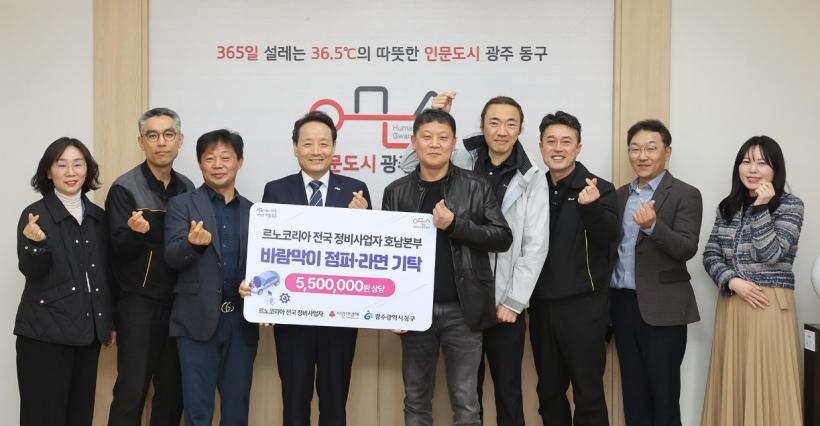 [°ø°£´º½º = ±è´ë¿µ±âÀÚ] ±¤ÁÖ µ¿±¸´Â ¸£³ëÄÚ¸®¾Æ Àü±¹ Á¤ºñ»ç¾÷ÀÚ È£³²º»ºÎ(º»ºÎÀå ÃÖÁß¼®)°¡ Áö³ 12ÀÏ ±¸Ã»¿¡¼ Áö¿ª³» µ¹º½ ÀÌ¿ôÀ» À§ÇØ 550¸¸ ¿ø »ó´çÀÇ ÈÄ¿ø ¹°Ç°À» Àü´ÞÇß´Ù°í ¹àÇû´Ù.