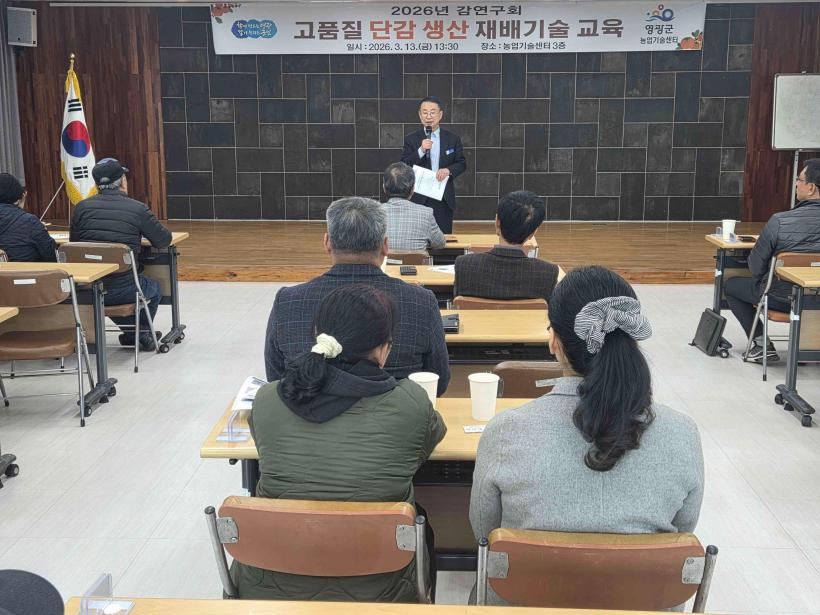 [°ø°£´º½º = ±è¼ö±Ù±âÀÚ] ¿µ±¤±º³ó¾÷±â¼ú¼¾ÅÍ´Â Áö³ 13ÀÏ Áö¿ª ³ó¾÷ÀεéÀÇ ´Ü°¨ »ý»ê¼º Çâ»óÀ» À§ÇØ Àç¹è±â¼ú ±³À°À» ½Ç½ÃÇß´Ù°í ¹àÇû´Ù. À̹ø ±³À°Àº °¨ Àç¹è ³ó°¡µéÀÌ È¿À²ÀûÀÎ Àç¹è ¹æ¹ýÀ» ¹è¿ì°í, ´Ü°¨ ǰÁú Çâ»óÀ» À§ÇÑ ±â¼úÀ» ½ÀµæÇϱâ À§ÇØ ¸¶·ÃµÇ¾ú´Ù.