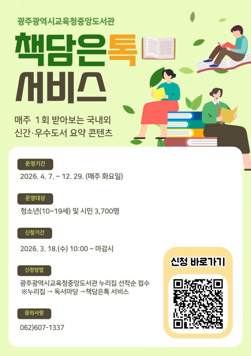 [°ø°£´º½º = ±è¼ö±Ù±âÀÚ] ±¤Áֽñ³À°Ã»Áß¾Óµµ¼°ü(ÀÌÇÏ ±¤ÁÖÁß¾Óµµ¼°ü)Àº ¿À´Â 4¿ù 7ÀϺÎÅÍ 12¿ù 29ÀϱîÁö û¼Ò³â°ú ½Ã¹ÎÀ» ´ë»óÀ¸·Î ½º¸¶Æ®Æù ±â¹Ý µ¶¼ Á¤º¸ Á¦°ø ÇÁ·Î±×·¥ÀÎ ¡®Ã¥´ãÀºÅå ¼ºñ½º¡¯¸¦ Á¦°øÇÑ´Ù.