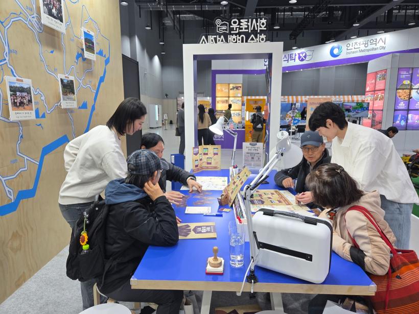 ƯÈ÷ Àü½Ã°ü Áß¾Ó¿¡ ¹èÄ¡µÈ ¡®È¼ø Æ®·¡ºí º¸µå¡¯´Â °ü¶÷°´µéÀÇ ¹ß±æÀ» ²ø¾ú´Ù. °ü¶÷°´µéÀº ȼøÀÇ ´ëÇ¥ °ü±¤Áö 20°÷ÀÌ ´ã±ä Ä«µå¸¦ ¼±ÅÃÇØ º¸µå À§¿¡ ¹èÄ¡Çϸç ÀڽŸ¸ÀÇ ¿©Çà µ¿¼±À» ¿Ï¼ºÇÑ´Ù.