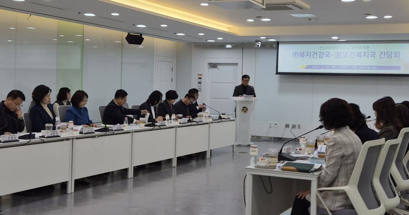 ±¤ÁÖ±¤¿ª½Ã¿Í Àü³²µµ´Â 23ÀÏ ½Ãû ¼ÒȸÀǽǿ¡¼ ¡®º¹Áö¡¤º¸°Ç ºÐ¾ß °£´ãȸ¡¯¸¦ °³ÃÖÇϰí, Á¤Ã¥ ¿¬°è¿Í ½ÇÁúÀûÀÎ Çù·Â ±â¹Ý ±¸ÃàÀ» À§ÇÑ Ã¹ ½Ç¹« ÇùÀǸ¦ ÁøÇàÇß´Ù. ÀÌ ÀÚ¸®´Â ÇàÁ¤ ÅëÇÕ¿¡ µû¸¥ Á¦µµÀû Â÷À̸¦ ¸é¹ÐÈ÷ Á¡°ËÇϰí, ÇöÀåÀÇ È¥¼±À» ÃÖ¼ÒÈÇϱâ À§ÇØ ¸¶·ÃµÆ´Ù.