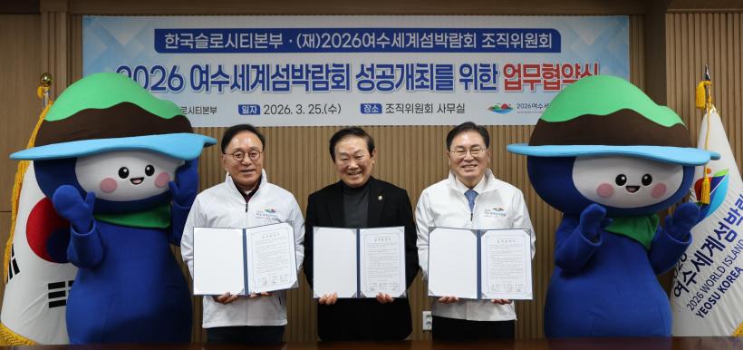 [°ø°£´º½º = ¾ÈÀ翵±âÀÚ] 2026¿©¼ö¼¼°è¼¶¹Ú¶÷ȸ Á¶Á÷À§¿øÈ¸(°øµ¿À§¿øÀå ±ÇÇÑ´ëÇà ¿©¼öºÎ½ÃÀå Á¤Çö±¸, °øµ¿À§¿øÀå ¹Ú¼ö°ü)¿Í Çѱ¹½½·Î½ÃƼº»ºÎ (±¹Á¦½½·Î½ÃƼ¿¬¸Í ºÎȸÀå °â Çѱ¹½½·Î½ÃƼº»ºÎ ÀÌ»çÀå ¼Õ´ëÇö)´Â Áö³ 25ÀÏ ¹Ú¶÷ȸÀÇ ¼º°øÀû °³ÃÖ¿Í Áö¼Ó°¡´ÉÇÑ ¼¶ ¹ßÀüÀ» À§ÇØ ¾÷¹«Çù¾à(MOU)À» ü°áÇß´Ù°í ¹àÇû´Ù.