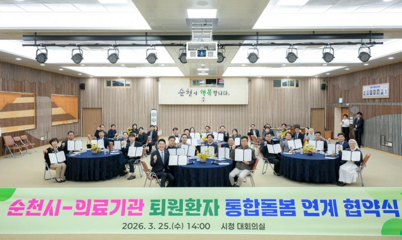 [°ø°£´º½º = ±è¿ëÁø±âÀÚ] ¼øÃµ½Ã´Â Áö³ 25ÀÏ ½Ãû ´ëȸÀǽǿ¡¼ Åð¿øÈ¯ÀÚÀÇ Áö¿ª»çȸ ¾ÈÂøÀ» Áö¿øÇϰí ÃÎÃÎÇÑ ÀÇ·á¿ä¾ç ÅëÇÕµ¹º½ »ç¾÷ÀÇ ³»½Çȸ¦ À§ÇØ 22°³¼Ò ÀÇ·á±â°ü°ú ¾÷¹« Çù¾àÀ» ü°áÇß´Ù°í ¹àÇû´Ù.