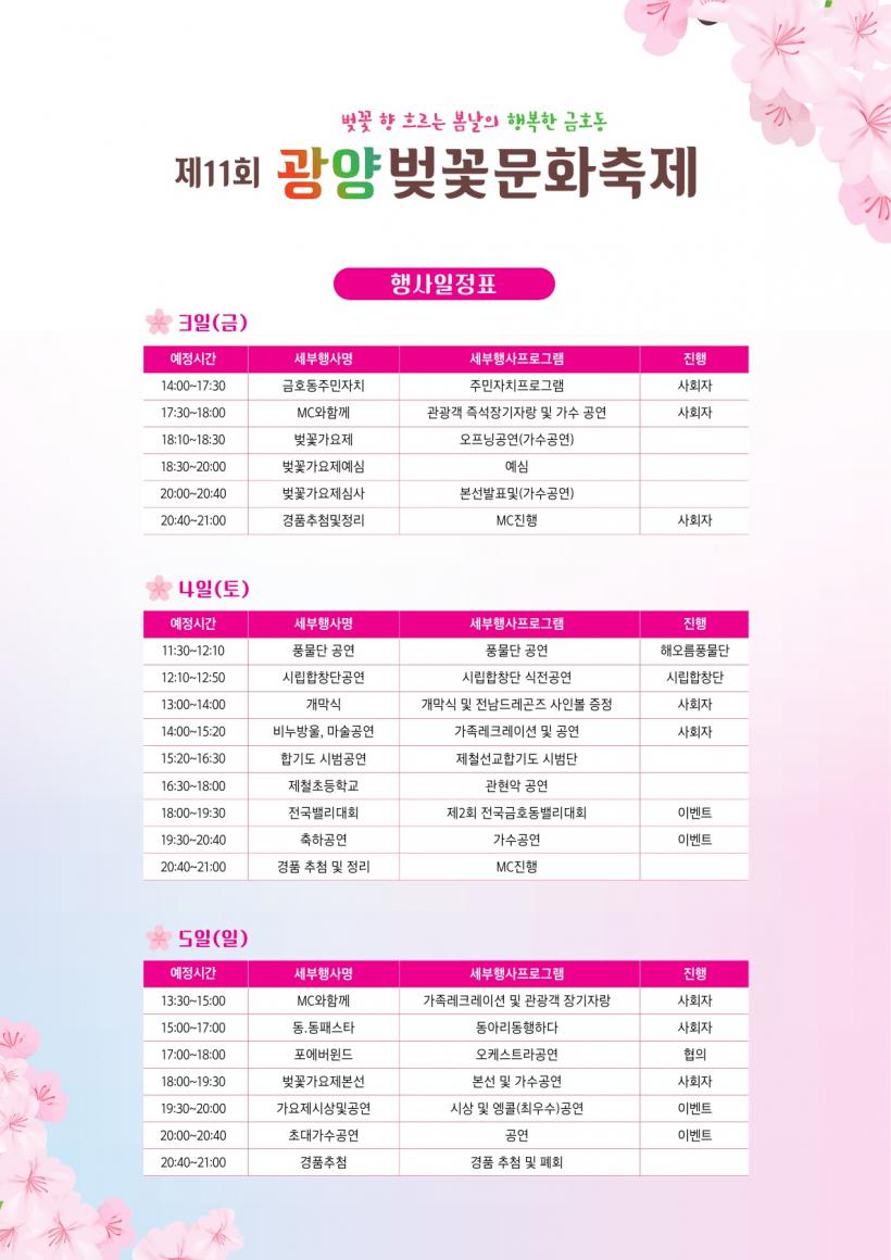 ¿ÃÇØ·Î 11ȸ¸¦ ¸ÂÀÌÇÏ´Â À̹ø ÃàÁ¦´Â ¡°º¢²ÉÇâ È帣´Â º½³¯ÀÇ ÇູÇÑ ±ÝÈ£µ¿¡±À̶ó´Â ½½·Î°Ç ¾Æ·¡ Áö¿ªÁֹΰú °ü±¤°´ÀÌ ÇÔ²² ¾î¿ì·¯Áö´Â ´Ùä·Î¿î ¹®ÈÇà»ç·Î ²Ù¸çÁú ¿¹Á¤ÀÌ´Ù.