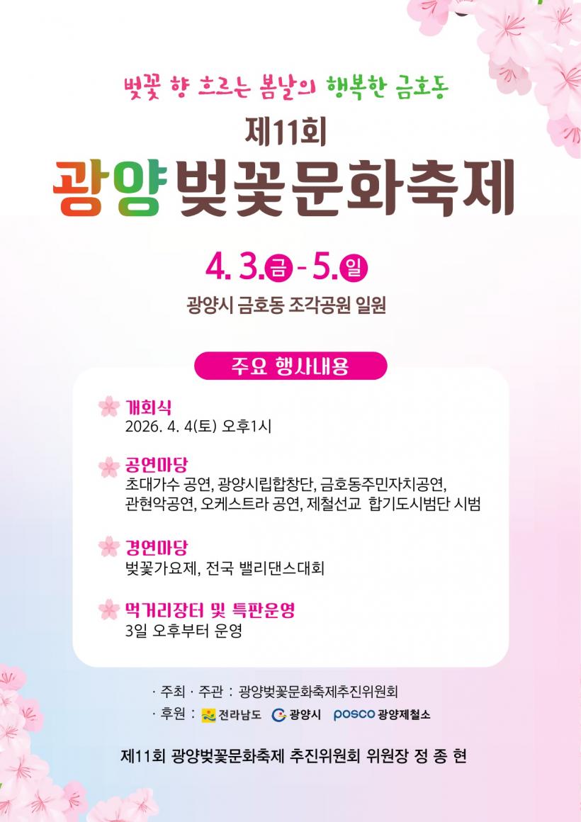 Á¤Á¾Çö ±¤¾çº¢²É¹®ÈÃàÁ¦ÃßÁøÀ§¿øÀåÀº ¡°Á¦11ȸ ±¤¾çº¢²É¹®ÈÃàÁ¦°¡ Áö¿ªÁÖ¹ÎÀº ¹°·Ð Àü±¹¿¡¼ ã¾Æ¿À´Â °ü±¤°´µé¿¡°Ô º½³¯ÀÇ ÇູÇÑ ±â¾ïÀ¸·Î ³²±æ ¹Ù¶õ´Ù¡±¸ç ¡°¾ÈÀüÇϰí ÄèÀûÇÑ ÃàÁ¦ ¿î¿µÀ» À§ÇØ Áغñ¿¡ ÃÖ¼±À» ´ÙÇϰڴ١±°í ¹àÇû´Ù.