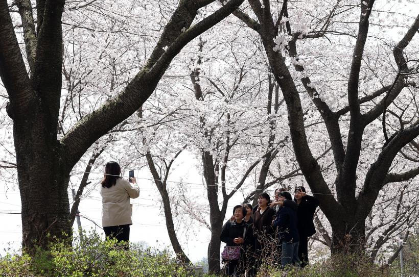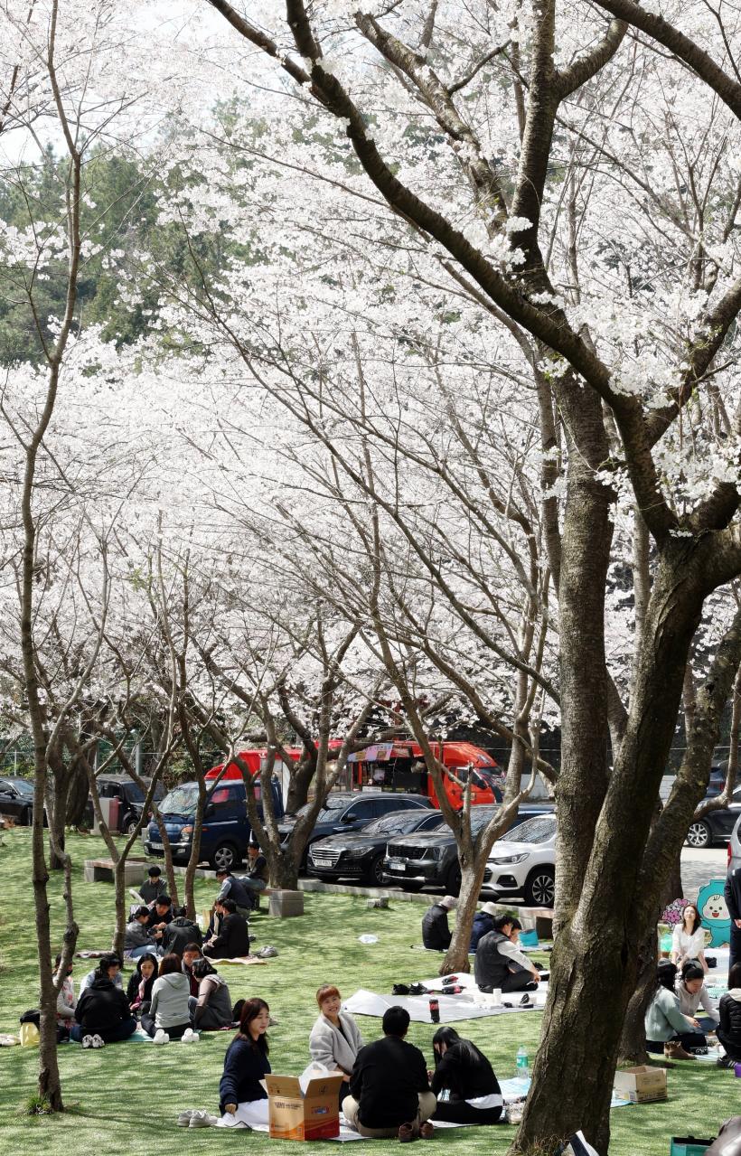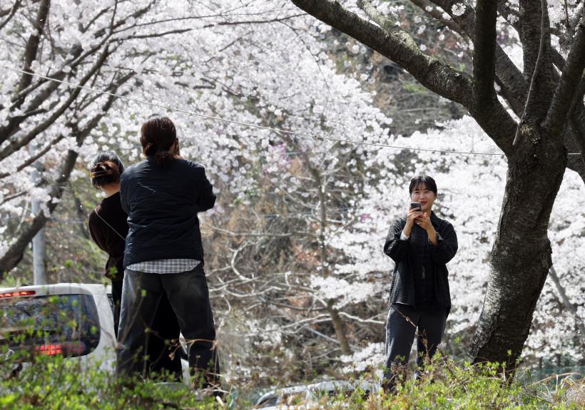 ¿Ï¿¬ÇÑ º½ ³¯¾¾¸¦ º¸ÀÎ Áö³ 2ÀÏ Àü³² °Áø±º ±Ý°î»ç º¢²É±æÀ» ãÀº »óÃá°´µéÀÌ ¸¼Àº ÇÏ´Ã ¾Æ·¡ Ȱ¦ ÇÉ º¢²ÉÀ» º¸¸ç º½³ªµéÀ̸¦ Áñ±â°í ÀÖ´Ù.
