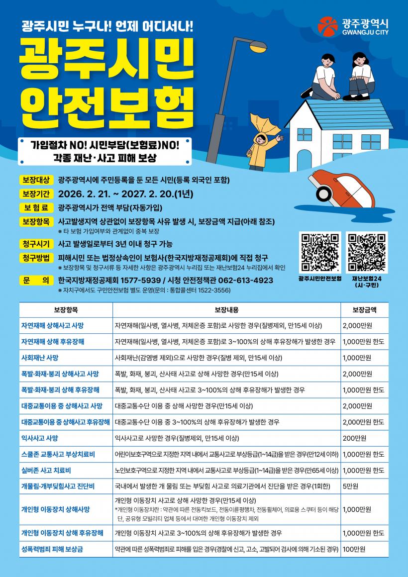 ½Ã¹Î¾ÈÀüº¸ÇèÀº ±¤ÁÖ±¤¿ª½Ã¿¡ Áֹεî·ÏÀÌ µÇ¾î ÀÖ´Â ½Ã¹Î°ú µî·Ï¿Ü±¹ÀÎÀ» ´ë»óÀ¸·Î º°µµÀÇ °¡ÀÔ ÀýÂ÷³ª º¸Çè·á ºÎ´ã ¾øÀÌ ÀÚµ¿ °¡ÀԵǴ °ø°øº¸Çè Á¦µµ´Ù.