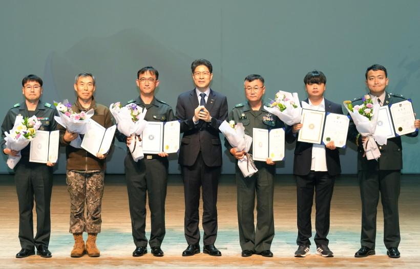 ¶Ç Áö¿ª¹æÀ§¿¡ ±â¿©ÇÑ ¿¹ºñ±º ´ë¿ø°ú °ü°èÀÚ¿¡°Ô Àü³²µµÁö»ç¡¤±¤ÁÖ½ÃÀå ǥâÀ» ¼ö¿©ÇÏ¸ç ±×µ¿¾ÈÀÇ ³ë°í¸¦ °Ý·ÁÇß´Ù.