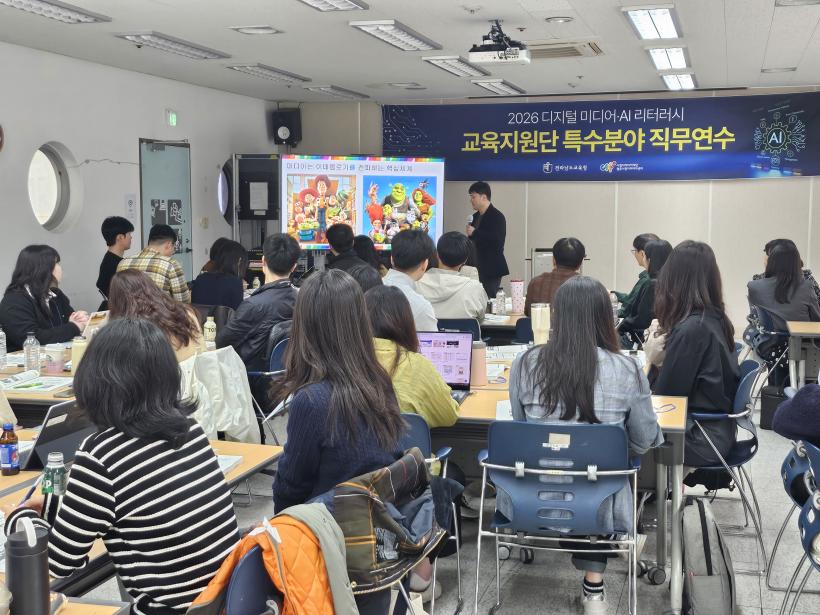 [°ø°£´º½º = ±è¼ö±Ù±âÀÚ] Àü¶ó³²µµ±³À°Ã»Àº 4¿ù 4ÀϺÎÅÍ 25ÀϱîÁö ±¤ÁÖ½ÃûÀڹ̵ð¾î¼¾ÅÍ¿¡¼ µðÁöÅÐ ¹Ìµð¾î‧AI ¸®ÅÍ·¯½Ã Áö¿ø´Ü°ú µ¿¾Æ¸® ±³»ç 50¸íÀ» ´ë»óÀ¸·Î ¡®2026. µðÁöÅÐ ¹Ìµð¾î‧AI ¸®ÅÍ·¯½Ã ±³¿ø Á÷¹«¿¬¼ö¡¯¸¦ ¿î¿µÇÑ´Ù.