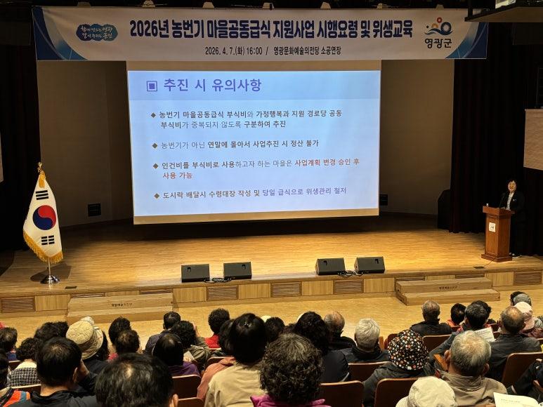[°ø°£´º½º = ±è¼ö±Ù±âÀÚ] ¿µ±¤±º(¿µ±¤±º¼ö ±ÇÇÑ´ëÇà ¼Û±¤¹Î)Àº Áö³ 7ÀÏ 2026³â ³ó¹ø±â ¸¶À»°øµ¿±Þ½Ä Áö¿ø»ç¾÷ ÃßÁø¿¡ ¾Õ¼ ¿µ±¤¹®È¿¹¼úÀÇÀü´ç ¼Ò°ø¿¬Àå¿¡¼ ´ë»ó¸¶À» 114°³¼ÒÀÇ ¸¶À»´ëÇ¥¿Í Á¶¸®¿ø 230¿©¸íÀ» ´ë»óÀ¸·Î »ç¾÷¼³¸íȸ ¹× À§»ý±³À°À» ½Ç½ÃÇÏ¿´´Ù.