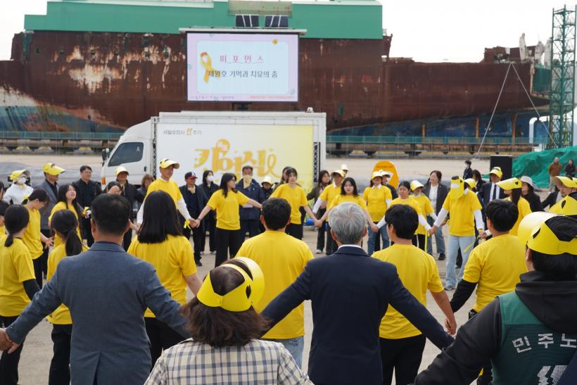 ¿ÃÇØµµ ¼¼¿ùÈ£ ¼±Ã¼ ¾Õ¿¡¼ ¿¸®´Â ¡°¼¼¿ùÈ£ Âü»ç 12Áֱ⠸ñÆ÷±â¾ï½Ä¡±Àº Âü»çÀÇ Áø»ó±Ô¸í°ú Ã¥ÀÓÀÚ Ã³¹ú¿¡ ´ëÇÑ ÀÇÁö¸¦ ´ÙÁö°í, ±íÀº ½½ÇÄÀ» °ÞÀº Èñ»ýÀÚ¸¦ À§·ÎÇÏ¸ç ¾ÈÀüÇÑ »çȸ¸¦ ¸¸µé°Ú´Ù´Â ´ÙÁüÀ» ÇÏ´Â Çà»ç·Î ±â¾ï»ç, Ã߸ð»ç, Ã߸ðÀ½¾Ç°ø¿¬, ¼±¾ð¹® ³¶µ¶, ÇåÈÀÇ ¼ø¼·Î ÁøÇàµÉ ¿¹Á¤ÀÌ´Ù.