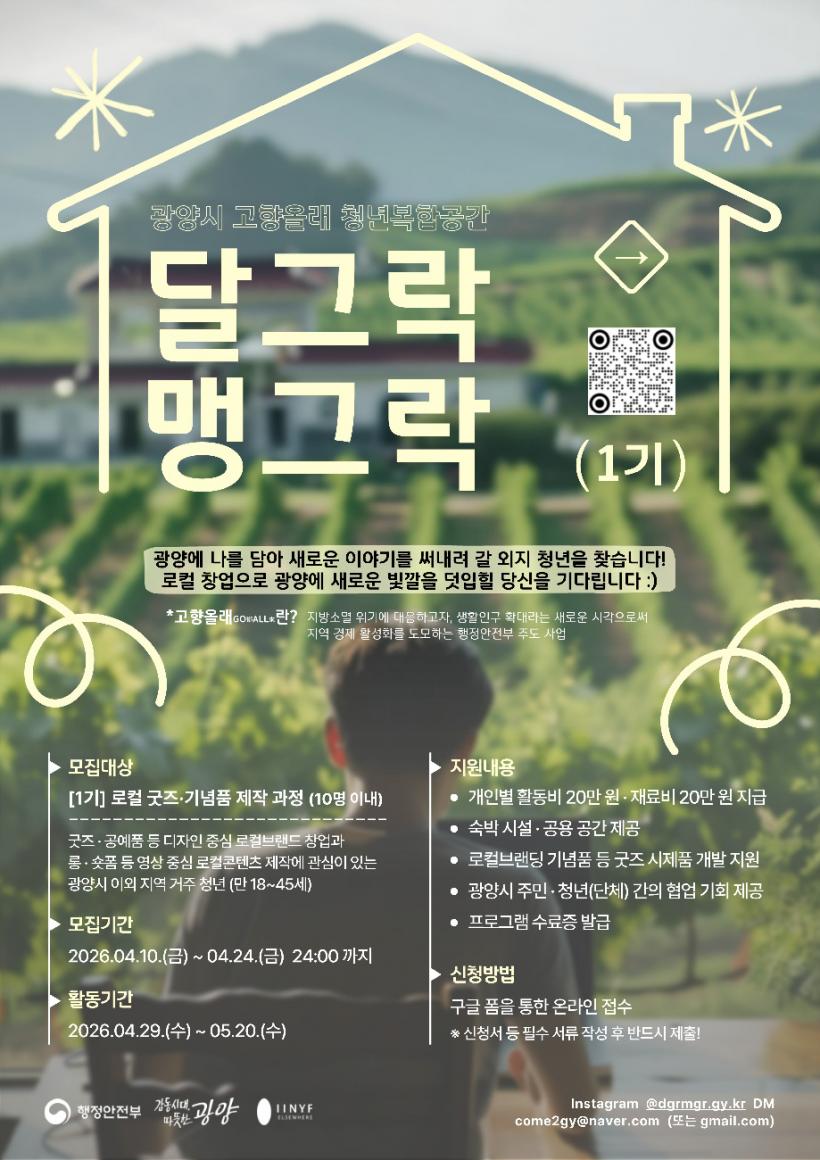 [°ø°£´º½º = Àå¿ÁÁø±âÀÚ] ±¤¾ç½Ã´Â û³âº¹ÇÕ°ø°£ °³¼Ò¿¡ ¾Õ¼ 4¿ù 10ÀϺÎÅÍ 24ÀϱîÁö û³â â¾÷ ÇÁ·Î±×·¥ ¡®Ã»³â â¾÷ ´Þ±×¶ô ¸Í±×¶ô 1±â¡¯ Âü¿©ÀÚ¸¦ ¸ðÁýÇÑ´Ù.