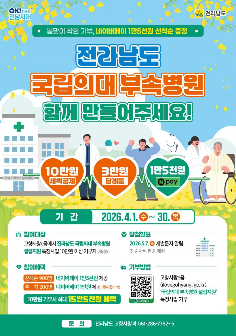 [°ø°£´º½º = ±è¼ö±Ù±âÀÚ] Àü¶ó³²µµ°¡ °íÇâ»ç¶û±âºÎÁ¦¸¦ Ȱ¿ëÇØ Áö¿ª ÀÇ·á ÀÎÇÁ¶ó È®Ãæ¿¡ ³ª¼±´Ù. ±¹¸³ÀÇ´ë ºÎ¼Óº´¿ø ¼³¸³À̶ó´Â ÇÙ½É »ç¾÷À» Áß½ÉÀ¸·Î ±âºÎ Âü¿©¸¦ È®´ëÇϱâ À§ÇÑ È«º¸ À̺¥Æ®¸¦ ¿¬°èÇØ ÃßÁøÇÑ´Ù.