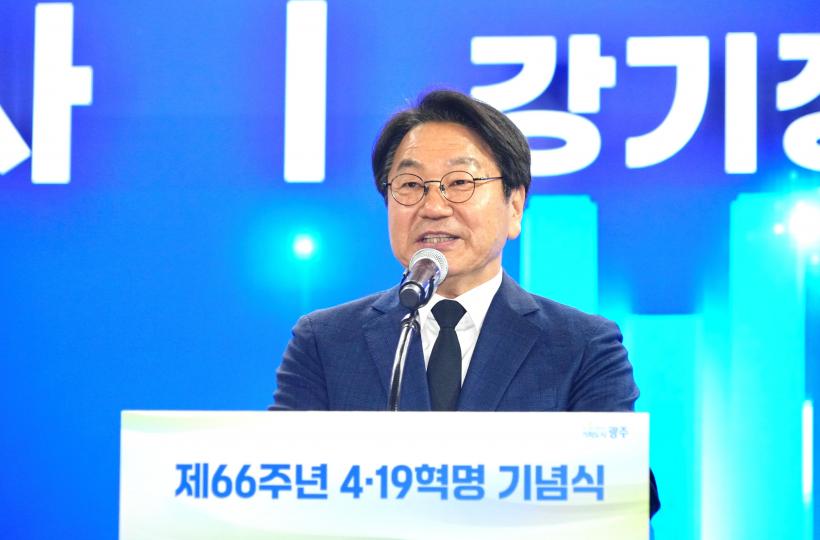 [°ø°£´º½º = ±è¼ö±Ù±âÀÚ] °±âÁ¤ ±¤ÁÖ±¤¿ª½ÃÀåÀÌ 19ÀÏ Á¦66ÁÖ³â 4¡¤19Çõ¸í ±â³ä½ÄÀ» ¸Â¾Æ ¡°4¡¤19Çõ¸í Á¤½ÅÀ» À̾î¹Þ¾Æ 5¡¤18¹ÎÁÖȿ Á¤½ÅÀ» Çå¹ý Àü¹®¿¡ ¹Ýµå½Ã ´ã°Ú´Ù¡±°í °Á¶Çß´Ù.