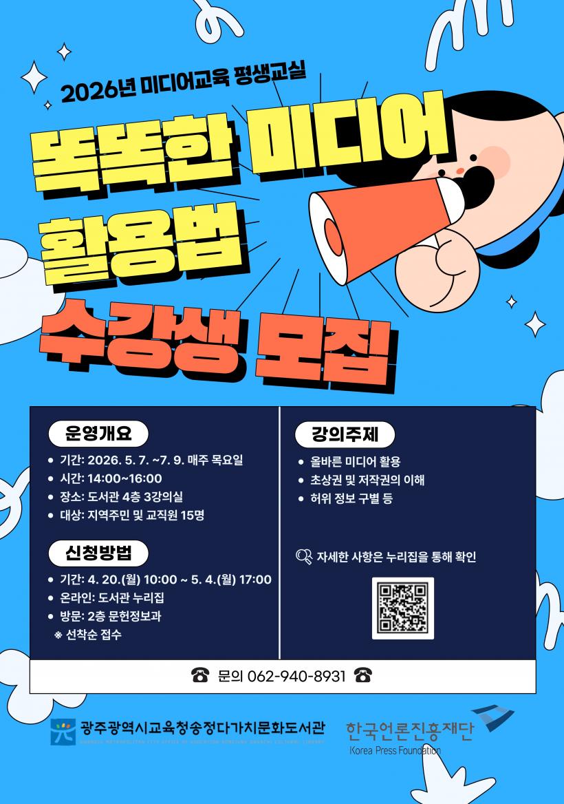 [°ø°£´º½º = ±è¼ö±Ù±âÀÚ] ±¤Áֽñ³À°Ã»¼ÛÁ¤´Ù°¡Ä¡¹®Èµµ¼°ü(ÀÌÇÏ ¼ÛÁ¤´Ù°¡Ä¡¹®Èµµ¼°ü)Àº ¿À´Â 5¿ù 7ÀϺÎÅÍ 7¿ù 9ÀϱîÁö ¡®2026³â ¹Ìµð¾î±³À° Æò»ý±³½Ç¡¯À» ¿î¿µÇÑ´Ù.