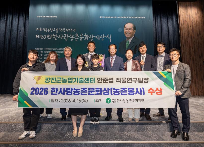[°ø°£´º½º = ¹Ú¼º¿Á±âÀÚ] °Áø±ºÀº ÇÑ»ç¶û³óÃ̹®ÈÀç´ÜÀÌ ÁÖ°üÇÏ´Â ¡®ÇÑ»ç¶û³óÃ̹®È»ó¡¯ ³óÃ̺À»ç ºÎ¹®¿¡¼ °Áø±º ³ó¾÷±â¼ú¼¾ÅÍ ¾ÈÁؼ· ÀÛ¹°¿¬±¸ÆÀÀåÀÌ ¼ö»óÀÇ ¿µ¿¹¸¦ ¾È¾Ò´Ù°í 20ÀÏ ¹àÇû´Ù.
