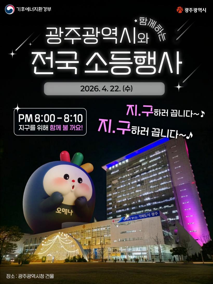 ƯÈ÷ ±¤ÁÖ±¤¿ª½Ã´Â ¡®Áö±¸¸¦ À§ÇØ ÇÔ²² ºÒ ²¨¿ä! Áö.±¸ÇÏ·¯(Áö±¸ ±¸ÇÏ·¯) ²ü´Ï´Ù¡¯ ¸Þ½ÃÁö¸¦ Àü´ÞÇϸç, °ø°ø±â°ü»Ó¸¸ ¾Æ´Ï¶ó ÀϹݰ¡Á¤, ¾ÆÆÄÆ®, »ó°¡ µî¿¡¼µµ ÀÚ¹ßÀûÀ¸·Î Âü¿©ÇÒ ¼ö ÀÖµµ·Ï ¿¡³ÊÁö Àý¾à ½Çõ ºÐÀ§±â¸¦ Á¶¼ºÇÒ °èȹÀÌ´Ù.
