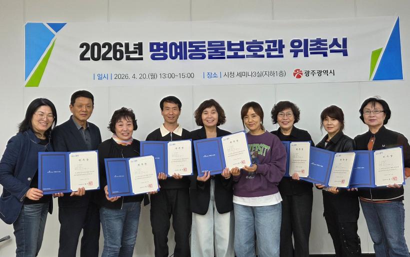 [°ø°£´º½º = ±è¼ö±Ù±âÀÚ] ±¤ÁÖ±¤¿ª½Ã(½ÃÀå °±âÁ¤)´Â 20ÀÏ ½Ãû ¼¼¹Ì³ª½Ç¿¡¼ ¼º¼÷ÇÑ ¹Ý·Áµ¿¹° ¹®È Á¤Âø°ú µ¿¹°º¹Áö ÁõÁøÀ» À§ÇÑ ¡®2026³â ¸í¿¹µ¿¹°º¸È£°ü À§Ã˽ġ¯À» °³ÃÖÇß´Ù.