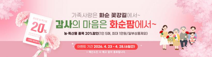 ÇÒÀÎ À̺¥Æ®´Â ȼøÆÊ ȸ¿øÀ» ´ë»óÀ¸·Î ³óƯ»ê¹° 20%, »ó»ý¸¶ÄÏ 10% ÇÒÀÎ ÄíÆùÀ» Á¦°øÇϸç, ½Å±Ô ȸ¿ø¿¡°Ô´Â 3,000¿ø ÇÒÀÎ ÄíÆùÀ» Ãß°¡ Áö±ÞÇÑ´Ù.