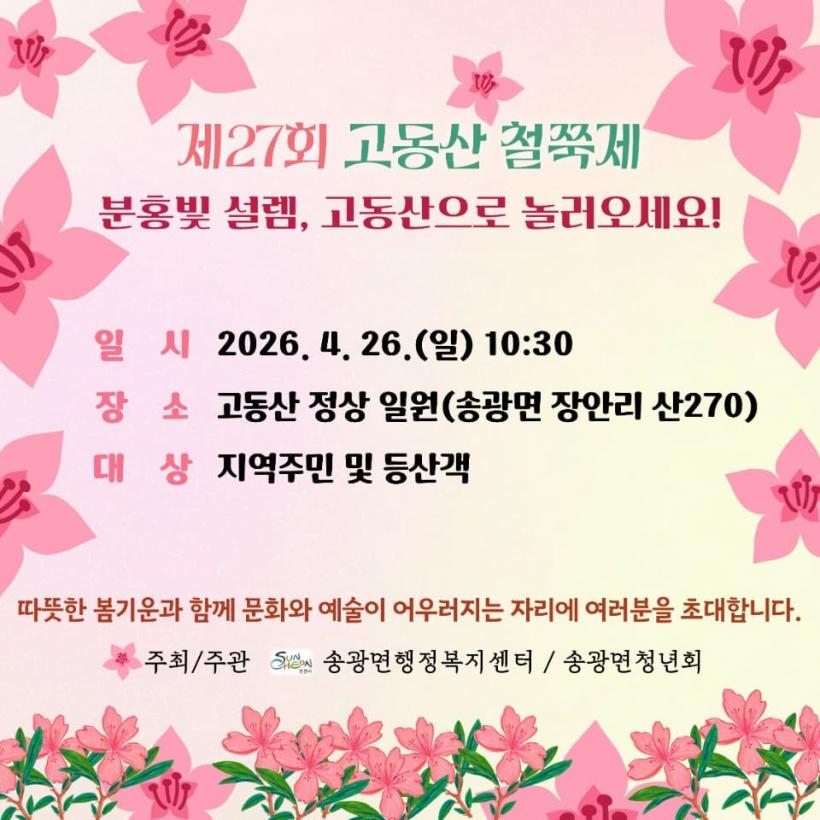 [°ø°£´º½º = ±è¿ëÁø±âÀÚ] ¼øÃµ½Ã ¼Û±¤¸é(¸éÀå ±è¹Ì¶õ)Àº ¿À´Â 26ÀÏ ¼Û±¤¸é Àå¾È¸® °íµ¿»ê Á¤»ó ÀÏ¿ø¿¡¼ ¡®Á¦27ȸ °íµ¿»ê öÂßÁ¦¡¯¸¦ °³ÃÖÇÑ´Ù°í ¹àÇû´Ù.