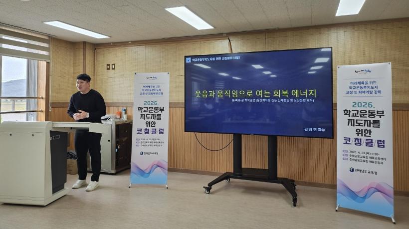 [°ø°£´º½º = ±è¼ö±Ù±âÀÚ] Àü¶ó³²µµ±³À°Ã»ÀÌ 23ÀÏ Àü³²±³À°Ã» üÀ°±³À°¼¾ÅÍ¿¡¼ ¡®2026Çг⵵ Çб³¿îµ¿ºÎÁöµµÀÚ¸¦ À§ÇÑ ÄÚĪŬ·´¡¯À» ¿î¿µÇß´Ù.