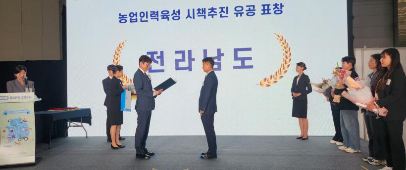 [°ø°£´º½º = ±è¼ö±Ù±âÀÚ] Àü¶ó³²µµ´Â 24ÀÏ ¼ö¿øÄÁº¥¼Ç¼¾ÅÍ¿¡¼ ¿¸° ¡®2026 ¿ÍÀÌÆÊ ¿¢½ºÆ÷(Y-FARM EXPO)¡¯¿¡¼ ³ó¸²Ãà»ê½ÄǰºÎÀÇ ³ó¾÷ÀηÂÀ°¼º½ÃÃ¥ ÃßÁø À¯°øÀÚ Ç¥Ã¢¿¡¼ ±Í³ó¾î±ÍÃÌ ¿ì¼ö½ÃÃ¥ ÃßÁø±â°üÀ¸·Î ¼±Á¤µÅ Àå°ü»óÀ» ¹Þ¾Ò´Ù.