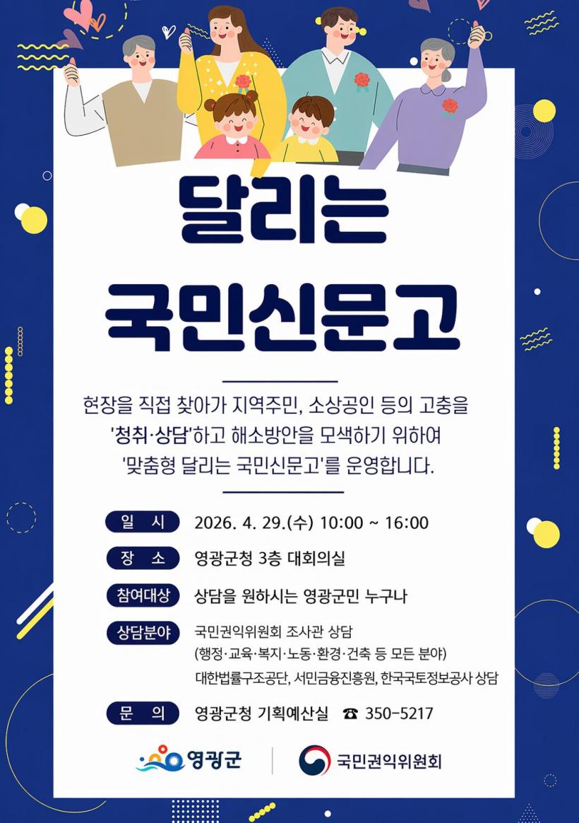 ¡®´Þ¸®´Â ±¹¹Î½Å¹®°í¡¯´Â ±¹¹Î±ÇÀÍÀ§¿øÈ¸°¡ ÁÖ°üÇÏ´Â ÇöÀå ¹Î¿ø»ó´ã Á¦µµ·Î¼ ±ÇÀÍÀ§¿øÈ¸ Á¶»ç°üµéÀÌ Áö¿ªÀ» Á÷Á¢ ¹æ¹®ÇÏ¿© ±º¹ÎµéÀÇ ´Ù¾çÇÑ °íÃæ¹Î¿øÀ» »ó´ãÇÏ°í ½ÇÁúÀûÀÎ ÇØ°á¹æ¾ÈÀ» Á¦½ÃÇÑ´Ù.