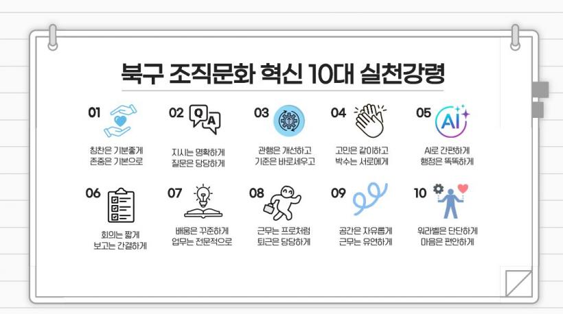 ¹®ÀÎ ºÏ±¸Ã»ÀåÀº ¡°10´ë ½Çõ°·ÉÀº Á¶Á÷¹®È °³¼±À» ÅëÇØ ¼öÁØ ³ôÀº ÇàÁ¤¼ºñ½º¸¦ Á¦°øÇϰíÀÚ ¸¶·ÃÇÑ °Í¡±À̶ó¸ç ¡°¾ÕÀ¸·Îµµ ±Þ°ÝÈ÷ º¯Çϴ ȯ°æ¿¡ À¯¿¬ÇÏ°Ô ÀûÀÀÇÒ ¼ö ÀÖ´Â Á¶Á÷¹®È°¡ Á¤ÂøµÉ ¼ö ÀÖµµ·Ï ÃÖ¼±À» ´ÙÇϰڴ١±°í ¸»Çß´Ù.