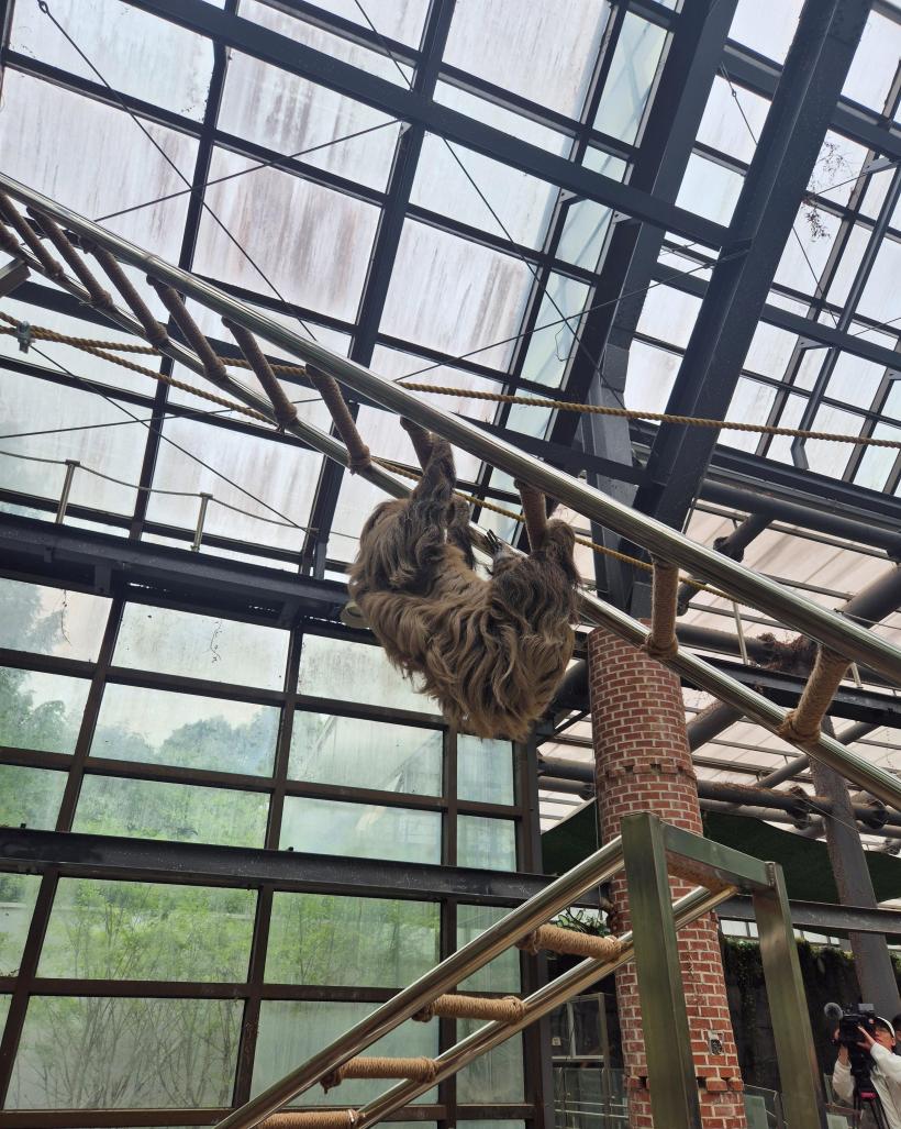 ³ª¹«´Ãº¸´Â ´ëºÎºÐ ³ª¹µ°¡Áö µî¿¡ ¹ßÅéÀ» °É°í °Å²Ù·Î ¸Å´Þ·Á »ýȰÇÑ´Ù. ÀÌ¿¡ ¿ìÄ¡µ¿¹°¿øÀº Áö»ó 5m ³ôÀÌ¿¡ ³ª¹«´Ãº¸°¡ ÀÚÀ¯·Ó°Ô ¸Å´Þ¸®±â À§ÇÑ ÁÙÀ» ¼³Ä¡, °ü¶÷°´ ¸Ó¸® À§·Î ³ª¹«´Ãº¸°¡ À̵¿ÇÒ ¼ö ÀÖµµ·Ï »çÀ° °ø°£À» Á¶¼ºÇß´Ù.