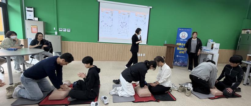 ÁÖ¿ä ±³À° ³»¿ëÀº ¡ã½ÉÁ¤Áö ȯÀÚ ¹ß°ß ½Ã ½Å°í ¹× µµ¿ò ¿äû ¿ä·É ¡ã°¡½¿ ¾Ð¹Ú ½ÉÆó¼Ò»ý¼ú ¡ãÀÚµ¿½ÉÀåÃæ°Ý±â(AED) »ç¿ë¹ý ¡ã±âµµ À̹°Áú ÈíÀÎ ½Ã ÀÀ±Þóġ(ÇÏÀÓ¸®È÷¹ý) µîÀÌ´Ù. Âü°¡ÀÚµéÀº ±³À°¿ë ¸¶³×Å·À» Ȱ¿ëÇØ °¡½¿ ¾Ð¹ÚÀÇ °µµ¿Í ¼Óµµ¸¦ Á÷Á¢ ½Ç½ÀÇϸç ÇöÀå ´ëÀÀ ´É·ÂÀ» üµæÇß´Ù.