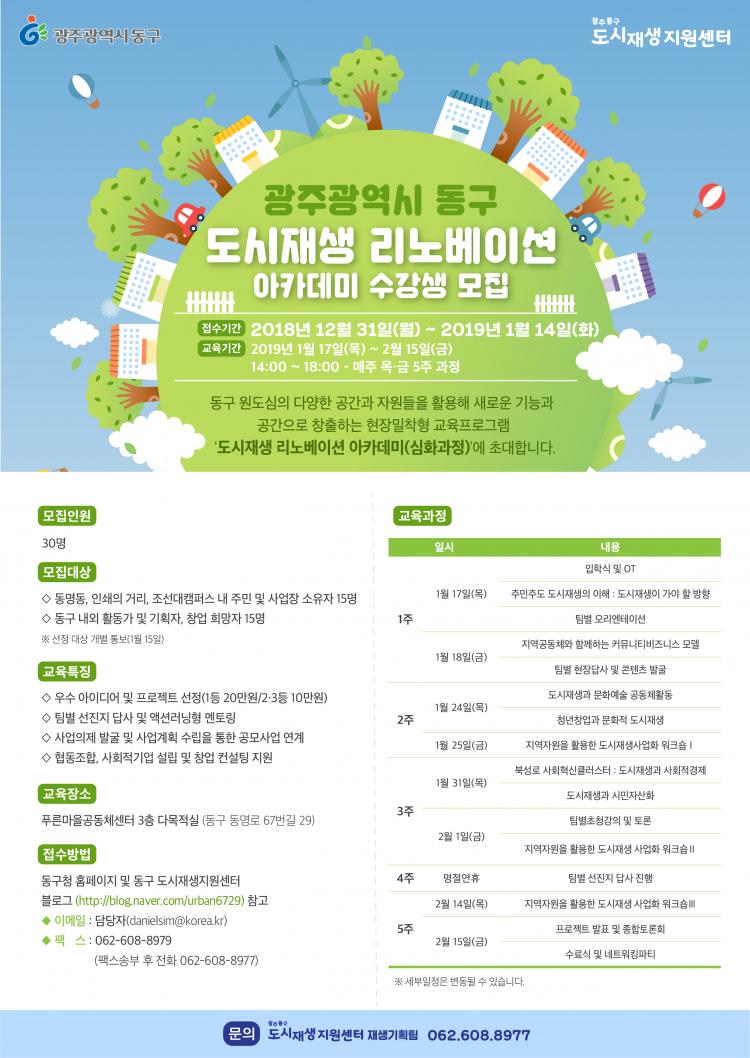 ±¤ÁÖ µ¿±¸(ûÀå ÀÓÅÃ)°¡ µµ½ÃÀç»ý´ºµô»ç¾÷ Àü¹®Àη ¾ç¼ºÀ» À§ÇÑ ¡®µµ½ÃÀç»ý ¸®³ëº£ÀÌ¼Ç ¾ÆÄ«µ¥¹Ì(½ÉȰúÁ¤)' ¼ö°»ýÀ» ¿À´Â 14ÀϱîÁö ¸ðÁýÇÑ´Ù°í ¹àÇû´Ù.