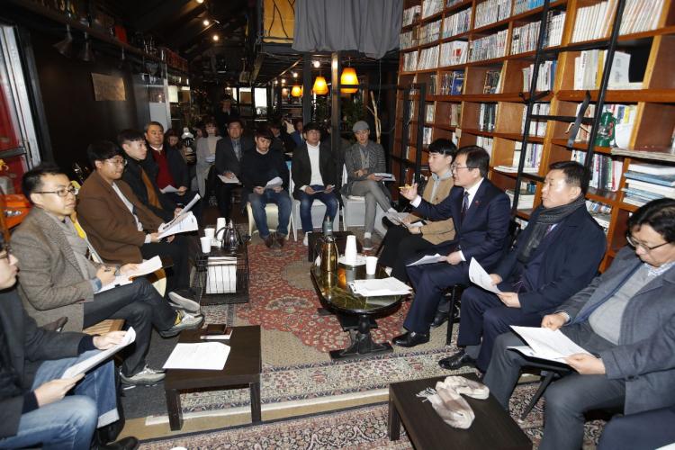 ¹®ÀÎ ºÏ±¸Ã»ÀåÀÌ Ã¢ÀǷ°ú ¾ÆÀ̵ð¾î¸¦ °¡Áø û³âµéÀÇ ¸ñ¼Ò¸®¸¦ µè±â À§ÇÑ ÇöÀ广¹®¿¡ ³ª¼¹´Ù.